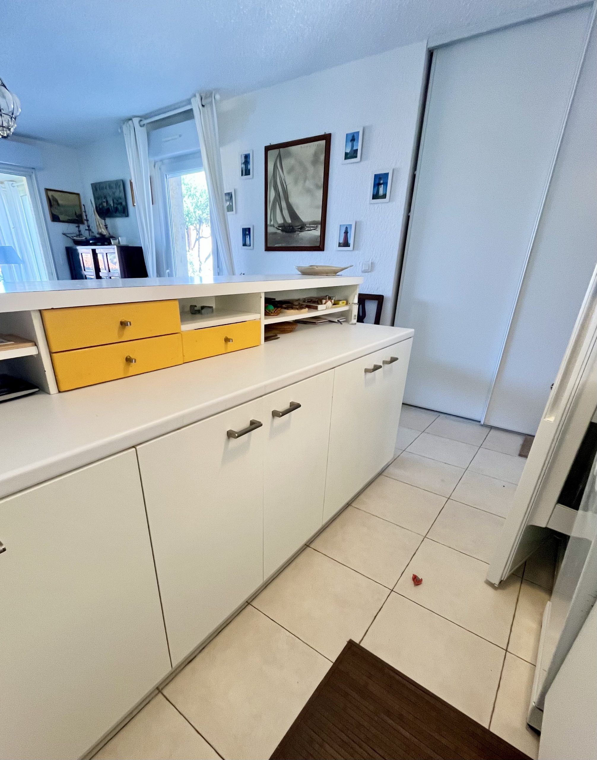 Composé d’un salon donnant sur la  loggia et l’extérieur , une  cuisine complétement équipée , rangements muraux.